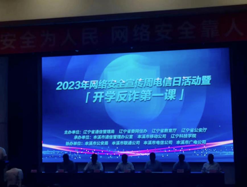 為深入貫徹落實習近平總書記重要指示批示精神,全面提升學生群體反詐意識,9月13日,2023年遼寧省網(wǎng)絡安全宣傳周“電信日”暨“開學反詐第一課”主題活動在本溪遼寧科技學院舉辦。活動由遼寧省通信管理局、遼寧省委網(wǎng)信辦、遼寧省公安廳、遼寧省教育廳聯(lián)合主辦,本溪市通信管理辦公室、本溪市移動公司、遼寧科技學院承辦。主辦單位有關(guān)領(lǐng)導出席活動,各基礎電信企業(yè)反詐相關(guān)人員、學生代表等近200人參加活動。