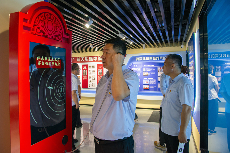 走進(jìn)這處奇妙空間,仿佛開啟了一場跨越時空的精神對話。序廳內(nèi)迎面展示的巨型藝術(shù)裝置“時空羅盤”,以星河流動的視覺震撼,瞬間點燃了我們對國家航天事業(yè)的崇敬之情。五大主題展廳內(nèi),從首顆人造衛(wèi)星模型到空間站核心部件,一件件實物見證著中國航天從追趕到領(lǐng)跑的偉大跨越。裸眼3D技術(shù)還原的火箭升空場景,讓我們真切感受到科研人員突破技術(shù)封鎖的艱辛與榮耀。在“五維空間”展區(qū),光影交織的科技感與航天精神的厚重感完美融合;戴上VR設(shè)備體驗“星際穿越”,更深刻體會到新時代航天人的使命擔(dān)當(dāng)。這場沉浸式學(xué)習(xí),激勵著我們將航天精神融入工作,在各自崗位上勇攀高峰。