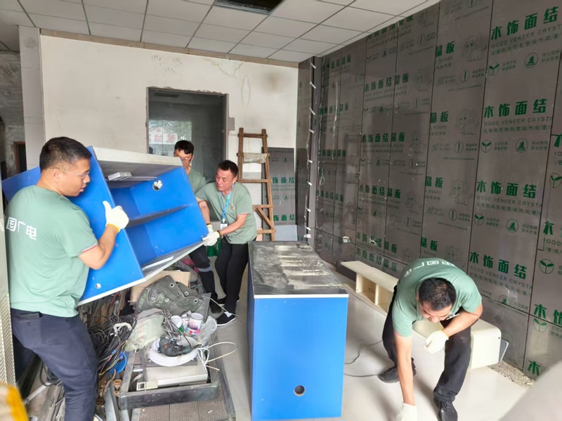 黨員干部始終挺在一線:于洪區(qū)域公司全體黨員干部吹響這場攻堅戰(zhàn)的集結(jié)號,帶領(lǐng)全體黨員沖鋒在前。他們牽頭組建拆改團隊,肩扛手搬裝修材料,保障日常運營與改造同步推進;曾擔任駐村第一書記的史艷清,將堅韌奉獻的駐村精神帶回團隊,與主管劉珣共同提出“把營業(yè)廳當成‘家’來建”的口號,還帶頭放棄休息時間,親自動手參與營業(yè)廳拆改。全體員工心往一處想、勁往一處使:為節(jié)省開支,大家從公司內(nèi)部及停用營業(yè)廳搜集閑置建材,甄選可復用舊件,讓老設備煥發(fā)新生——舊門頭覆蓋原營業(yè)廳名稱,貼上“長江北街營業(yè)廳”字樣,便成了新門頭;從鐵西二區(qū)域公司“退役”的營業(yè)板臺,經(jīng)打磨后再度“上崗”;唯一一臺空調(diào)來自原機房拆機;廢棄玻璃板被改造成明亮隔斷;機房門框由三種不同材料拼合而成;沒有專業(yè)施工隊伍,就自己調(diào)漆刷墻、更換窗戶;營業(yè)廳地磚“東拼西湊”,色差明顯處便鋪地毯遮蓋;吊頂則是從其他廢棄機房拆下后自行拼裝;為避免隔壁浴池潮氣導致墻面“長毛”,就用鋁扣板替代處理……營業(yè)廳的每一處細節(jié),都寫滿團隊修舊利廢的巧思與親手打造的痕跡。