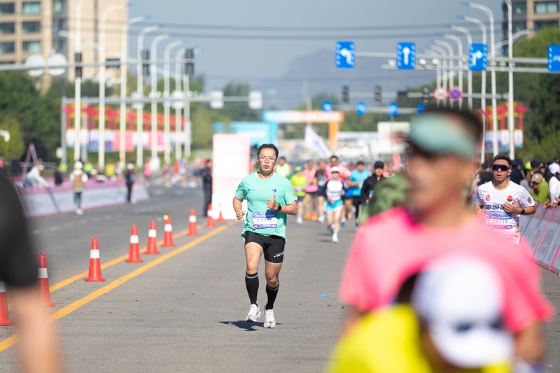 賽跑中的“悅跑”馬拉松隊(duì)員曲楠