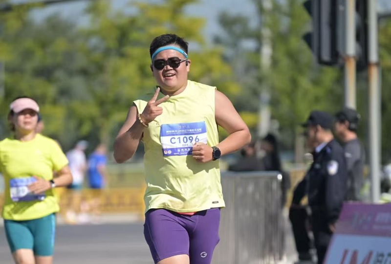 沖過終點(diǎn)線的“悅跑”馬拉松隊(duì)員高永生