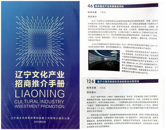 在同日舉辦的項目對接洽談會上,北方廣電網(wǎng)絡(luò)公司共推出了兩個文化產(chǎn)業(yè)招商項目,即擬聯(lián)合籌措1億元資金,用以建立媒體融合產(chǎn)業(yè)發(fā)展基金項目,基金支持具體包括融媒體中心、智慧城市應(yīng)用在內(nèi)的相關(guān)產(chǎn)業(yè)項目。并擬籌資3億元資金,針對遼寧省尚存的80萬標(biāo)清機(jī)頂盒用戶,通過市場化+二次整轉(zhuǎn)相結(jié)合的方式將全部存量標(biāo)清終端更換為“小精靈”智能機(jī)頂盒終端,其中終端投入2.4億元,前端應(yīng)用平臺投入0.6億元。上述兩個項目,誠邀合作商共同利用北方廣電已搭建的智能平臺聯(lián)合投資運(yùn)營并共享收益。
