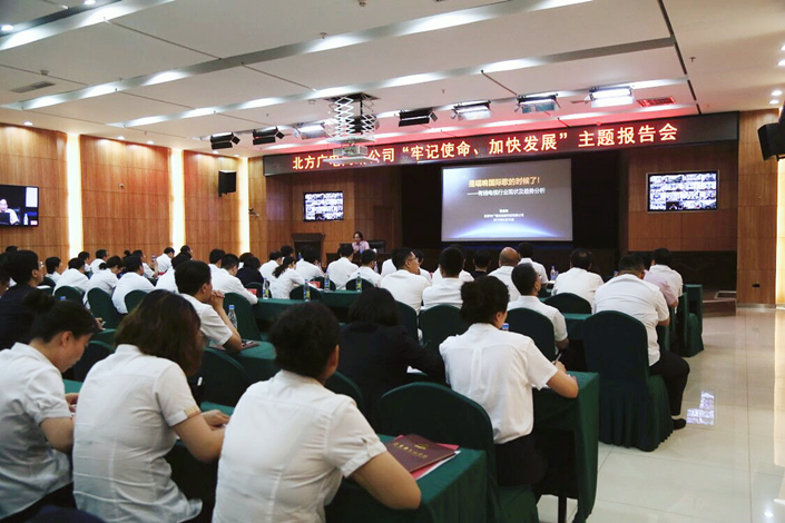 6月20日,北方廣電網(wǎng)絡公司召開“北方廣電大講堂”首場報告——“牢記使命、加快發(fā)展”主題報告會。北京中廣格蘭信息科技有限公司董事長、總經理,兼任中國廣播電視協(xié)會有線電視委員會副秘書長、中國電影電視技術學會臺網(wǎng)協(xié)作發(fā)展專業(yè)委員會常務副主任委員兼秘書長、中國電視藝術家協(xié)會媒體融合推進委員會常務理事、北京郵電大學MBA中心特聘導師、國家開發(fā)銀行行業(yè)顧問曾會明先生作報告。會議由公司黨委委員、總工程師王兆恒主持。