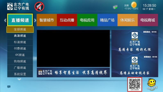 如果您家里已安裝北方廣電機(jī)頂盒,開(kāi)機(jī)后掃描屏幕右下方“業(yè)務(wù)預(yù)約二維碼”,即可進(jìn)行業(yè)務(wù)預(yù)約。