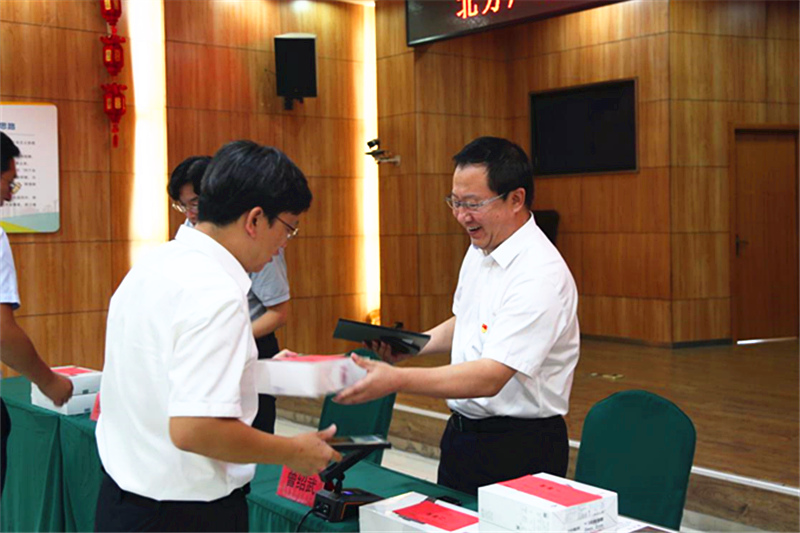 公司副總經(jīng)理張曉鈞同志為獲獎作者頒獎