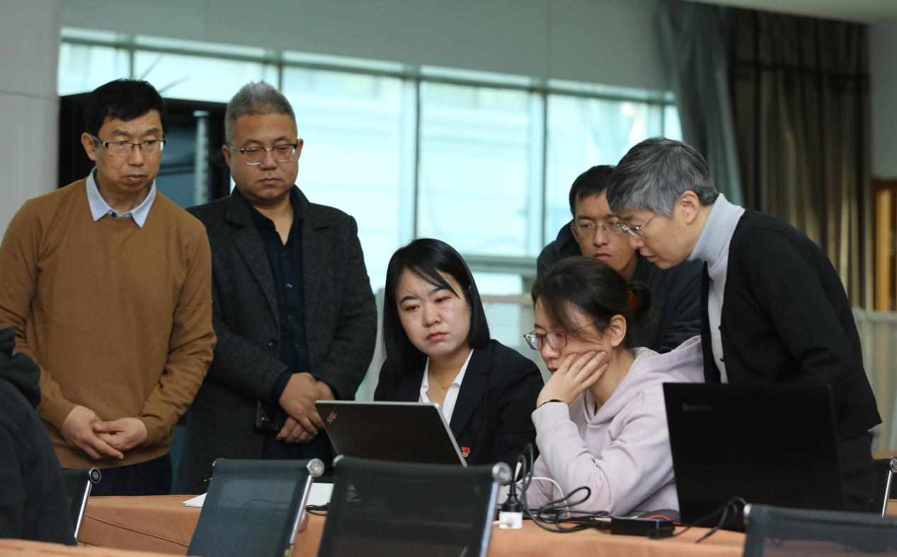 公司黨建工作部工作人員(左三)指導參訓的同志進行軟件操作