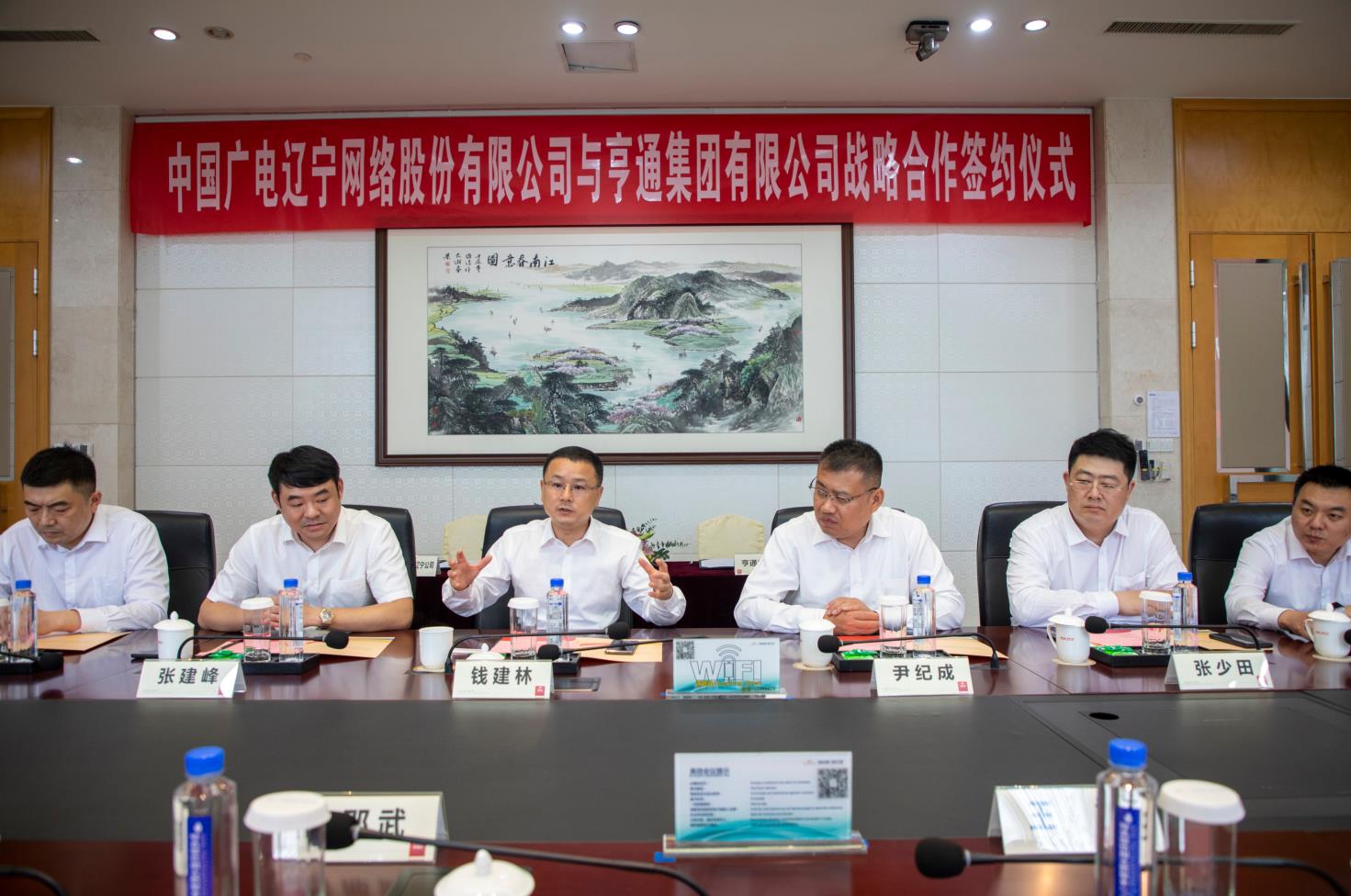 2021年6月4日上午,中國廣電遼寧網(wǎng)絡(luò)股份有限公司(簡稱遼寧廣電)與亨通集團(tuán)有限公司(簡稱亨通集團(tuán))戰(zhàn)略合作協(xié)議簽約儀式在蘇州亨通集團(tuán)總部舉行。遼寧廣電黨委書記、董事長、總經(jīng)理曾紹武,總工程師王兆恒,總經(jīng)理助理王婷與亨通集團(tuán)執(zhí)行總裁錢建林,運(yùn)營管理中心總經(jīng)理尹紀(jì)成,通信產(chǎn)業(yè)集團(tuán)副總裁、亨通光電總經(jīng)理張建峰出席了簽約儀式。