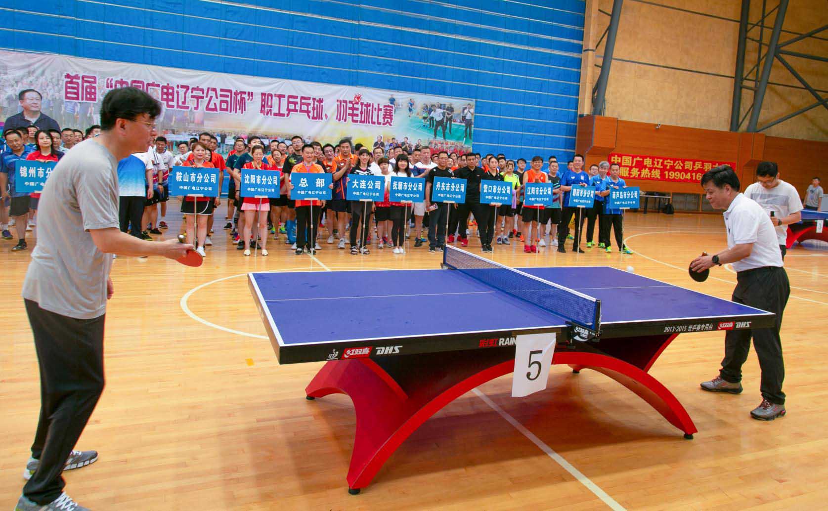 本次乒羽比賽共設(shè)乒乓球團(tuán)體賽、個(gè)人賽和羽毛球團(tuán)體賽三個(gè)比賽項(xiàng)目。隨著張曉鈞與陳金宏揮拍開球,首屆“中國(guó)廣電遼寧公司杯”職工乒乓球、羽毛球比賽正式開賽。