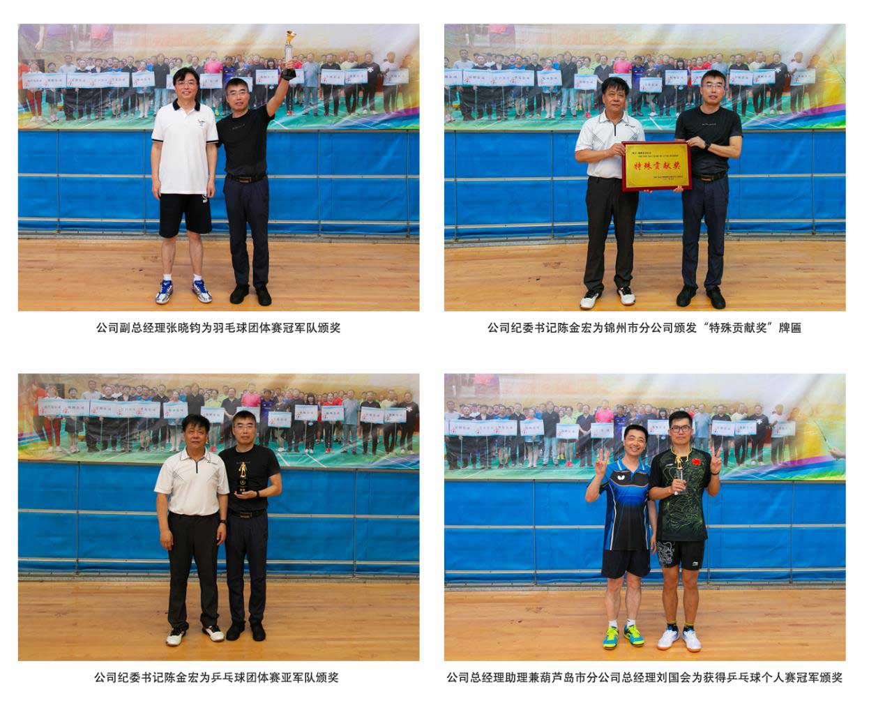 經(jīng)過兩天的激烈角逐,沈陽(yáng)市分公司、錦州市分公司、大連天途公司代表隊(duì)分別獲得乒乓球團(tuán)體冠、亞、季軍;沈陽(yáng)市分公司張琦、沈維縣和公司總部張博研分別奪得乒乓球個(gè)人冠、亞、季軍;羽毛球團(tuán)體賽冠、亞、季軍分別花落錦州市分公司、沈陽(yáng)市分公司、鞍山市分公司代表隊(duì)。組委會(huì)還專門授予錦州市分公司“特殊貢獻(xiàn)獎(jiǎng)”。