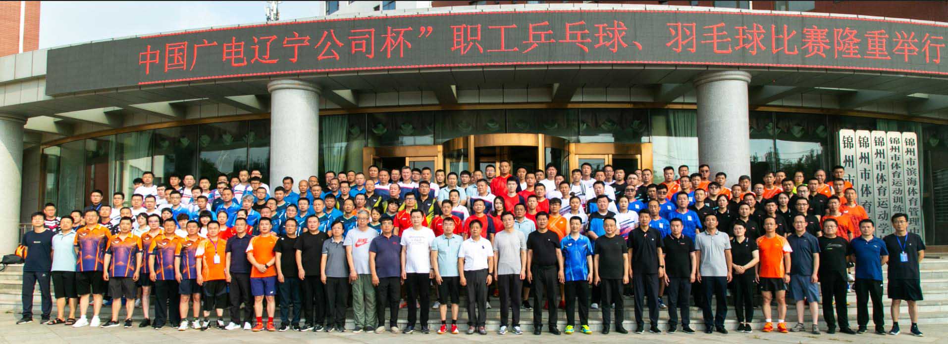 首屆“中國(guó)廣電遼寧公司杯”職工乒羽比賽前運(yùn)動(dòng)員和工作人員合影