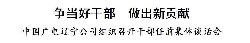 2021年8月24日上午,中國廣電遼寧網(wǎng)絡(luò)股份有限公司(簡(jiǎn)稱中國廣電遼寧公司)組織召開了干部任前集體談話會(huì)。公司黨委書記、董事長、總經(jīng)理曾紹武,黨委委員、副總經(jīng)理張曉鈞,黨委委員、紀(jì)委書記陳金宏,黨委委員、總工程師王兆恒,黨建工作部、紀(jì)檢監(jiān)察部部長劉云良,人力資源部副總經(jīng)理韓廷俊及新晉升職級(jí)的9名同志參加了談話會(huì),談話會(huì)由陳金宏主持。