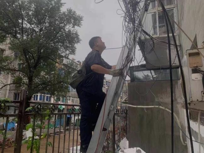 今年8月下旬一天傍晚,正值用戶(hù)觀(guān)看電視節(jié)目的高峰期,轄區(qū)內(nèi)綠化街35棟的供電器突發(fā)故障,造成數(shù)百用戶(hù)家電視信號(hào)中斷。以往,責(zé)任區(qū)網(wǎng)格專(zhuān)員要趕回營(yíng)業(yè)廳取件替換,但這樣往返至少耽誤一個(gè)多小時(shí),于是在微信群中發(fā)布了互助信息……家住附近的非責(zé)任區(qū)網(wǎng)格協(xié)作格班長(zhǎng)、共產(chǎn)黨員郭芳鈺聞?dòng)嵑螅?huà)不說(shuō),扛著梯子、提著工具包,一路小跑趕到故障現(xiàn)場(chǎng)……爬梯子、測(cè)信號(hào)、換器件,一氣呵成,僅用不到30分鐘即排除了故障?;璋档穆窡粝拢尖曈靡陆蟛涟押?,又悄無(wú)聲息地消失在盛夏的夜色里……