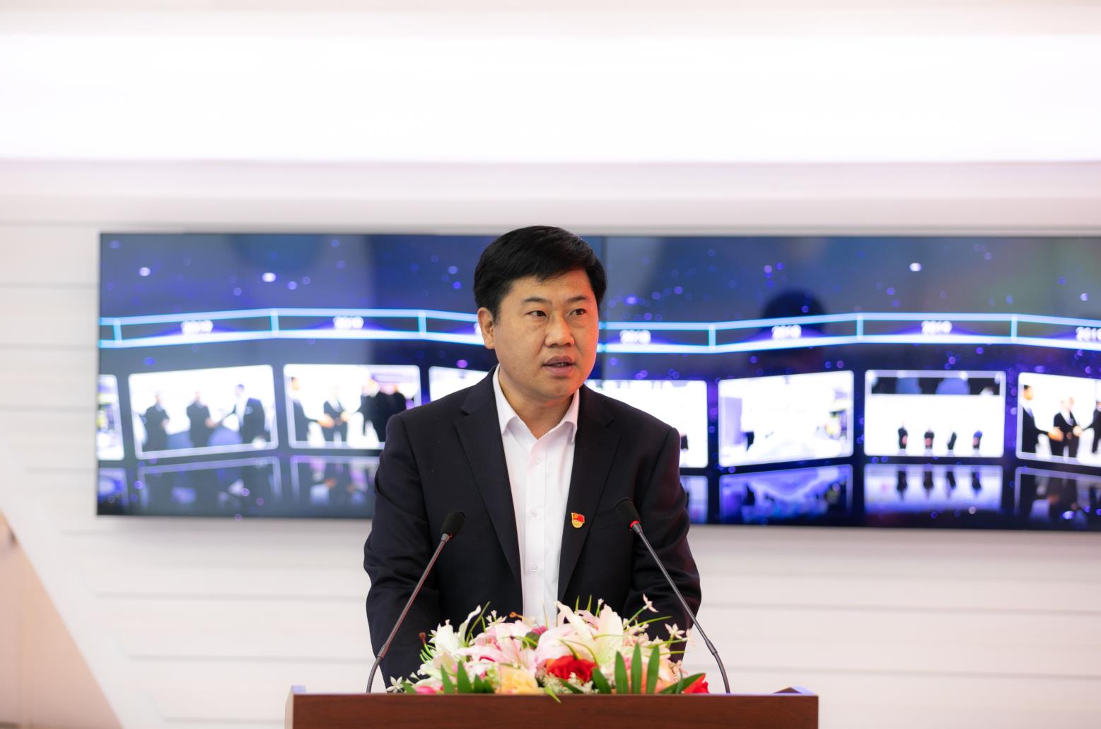 曾紹武董事長向參加儀式領導介紹公司5G智慧安防、智慧港口等業(yè)務應用