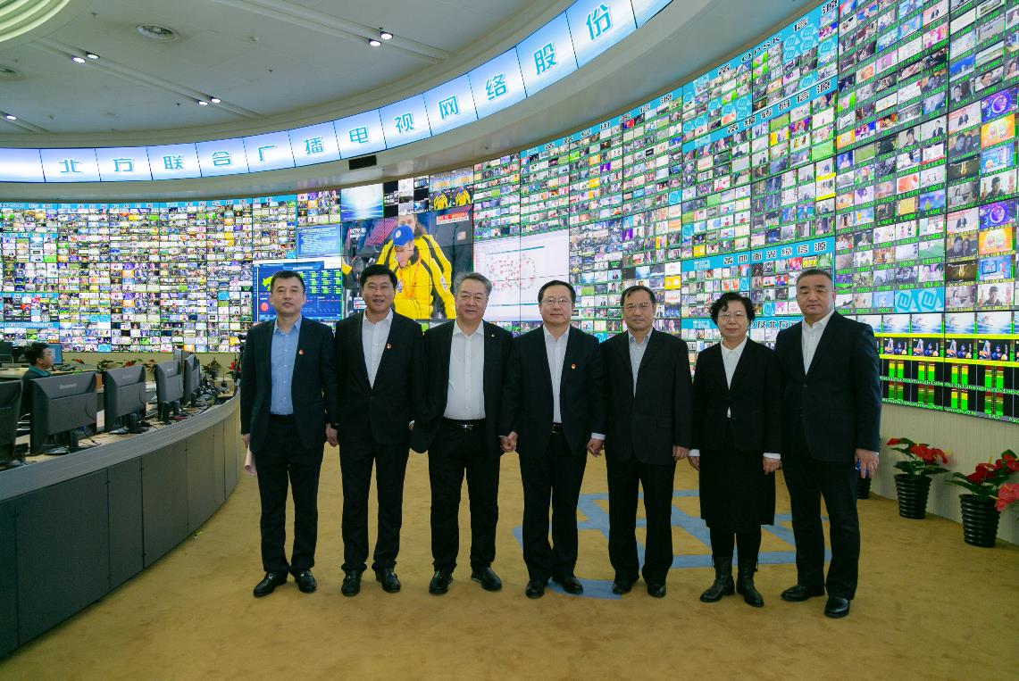 戰(zhàn)略合作三方領導在監(jiān)控平臺前合影