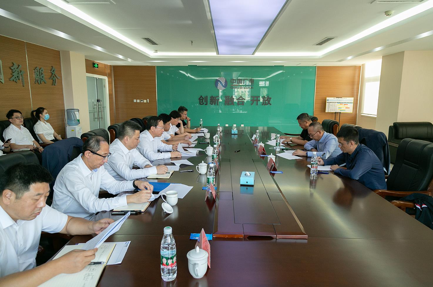 在隨后舉行的座談會上,楊利景副部長強(qiáng)調(diào),黨的二十大召開在即,安全播出保障工作任務(wù)艱巨。公司各級黨組織、各部門都要深刻認(rèn)識到,安全播出是重要的政治責(zé)任和政治任務(wù)?!胺彩略t立,不豫則廢”,我們要深刻意識到廣電網(wǎng)絡(luò)的政治屬性、意識形態(tài)屬性,想得再細(xì)一些、再實(shí)一些,確保安全播出萬無一失。在談到公司未來改革發(fā)展方向時,楊利景副部長認(rèn)為,政策就是機(jī)遇,國家的利好政策一定要緊緊抓住。一方面我們要積極拓展新的業(yè)務(wù)增長點(diǎn),發(fā)揮自身網(wǎng)絡(luò)優(yōu)勢,實(shí)現(xiàn)廣電5G技術(shù)與數(shù)字遼寧智造強(qiáng)省發(fā)展戰(zhàn)略有效對接;另一方面,務(wù)必抓住5G 192商用放號機(jī)遇,對于即將開展的通信業(yè)務(wù)要提前謀劃,搶先布局,造成聲勢,在激烈的市場競爭之下,殺出一條血路,最大程度地將5G 192商用放號機(jī)遇轉(zhuǎn)化為實(shí)際效益。