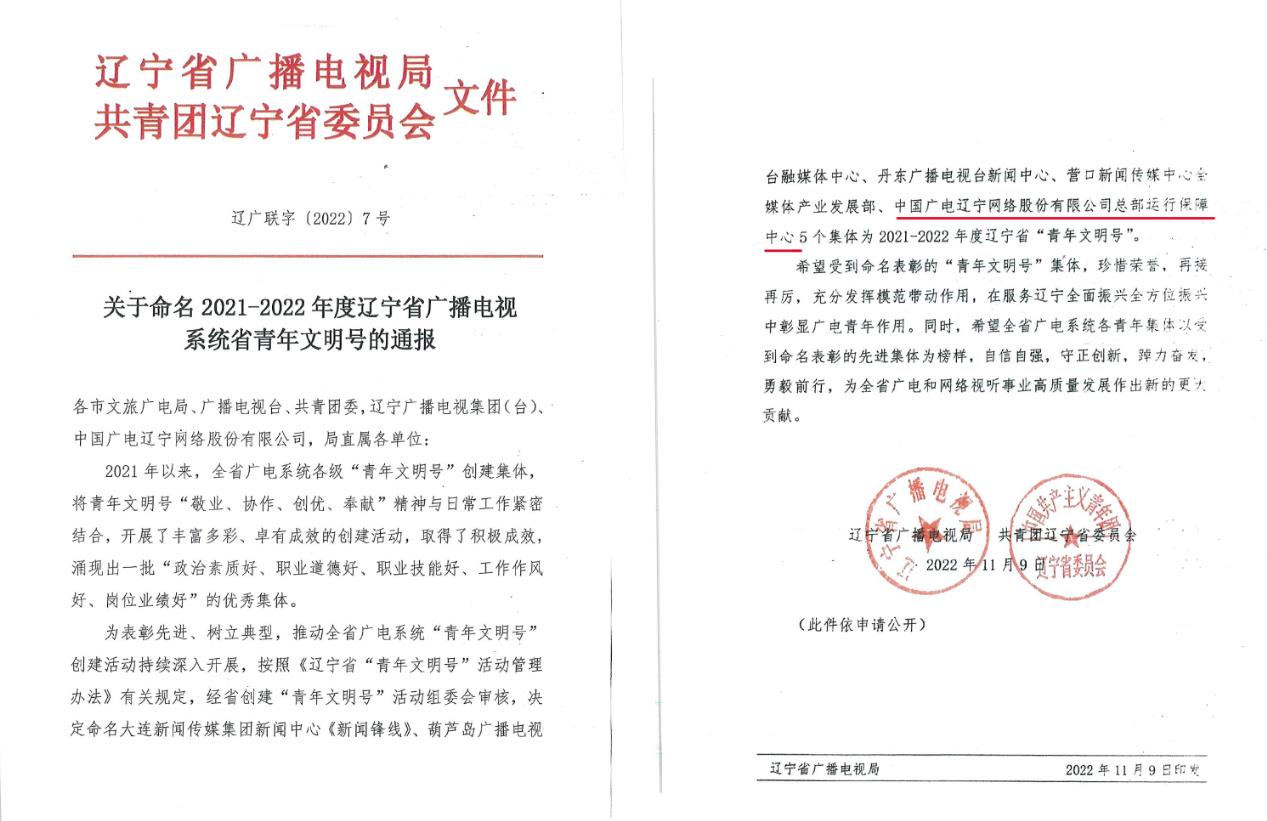 2021年以來(lái),全省廣電系統(tǒng)各級(jí)“青年文明號(hào)”創(chuàng)建集體,將青年文明號(hào)“敬業(yè)、協(xié)作、創(chuàng)優(yōu)、奉獻(xiàn)”精神與日常工作緊密結(jié)合,開(kāi)展了豐富多彩、卓有成效的創(chuàng)建活動(dòng),取得了積極成效,涌現(xiàn)出一批“政治素質(zhì)好、職業(yè)道德好、職業(yè)技能好、工作作風(fēng)好、崗位業(yè)績(jī)好”的優(yōu)秀集體。為表彰先進(jìn)、樹(shù)立典型,推動(dòng)全省廣電系統(tǒng)“青年文明號(hào)”創(chuàng)建活動(dòng)持續(xù)深入開(kāi)展,按照《遼寧省“青年文明號(hào)”活動(dòng)管理辦法》有關(guān)規(guī)定,經(jīng)省創(chuàng)建“青年文明號(hào)”活動(dòng)組委會(huì)審核,遼寧省廣播電視局和共青團(tuán)遼寧省委員會(huì)決定命名中國(guó)廣電遼寧公司總部運(yùn)行保障中心等5個(gè)集體為2021-2022年度遼寧省“青年文明號(hào)”。