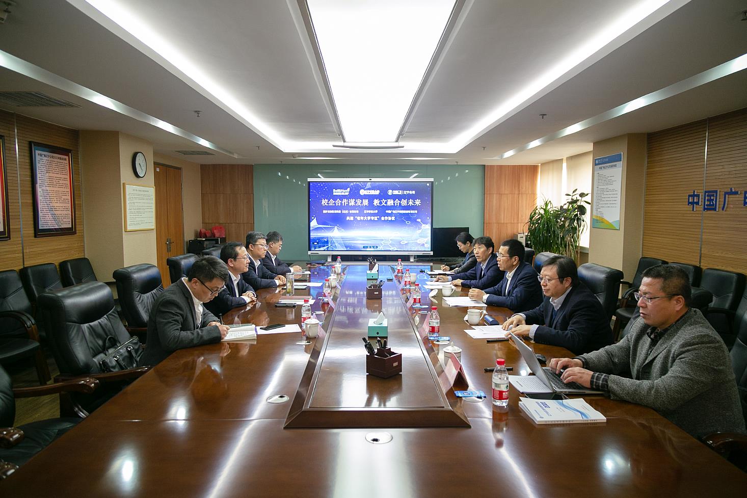 簽約儀式前,雙方主要領(lǐng)導(dǎo)針對(duì)此次合作進(jìn)行了座談。曾紹武董事長(zhǎng)代表中國(guó)廣電遼寧公司對(duì)伊煥斌一行來訪表示歡迎,并對(duì)遼寧開放大學(xué)一直以來對(duì)中國(guó)廣電遼寧公司的支持和信任表示感謝。他表示,雙方前期的合作碩果累累,廣電“老年大學(xué)”學(xué)習(xí)平臺(tái)覆蓋了我省百萬家庭;雙方聯(lián)合制作慕課獲得教育部推薦;“中國(guó)廣電智慧助老項(xiàng)目”成為教育部“智慧助老”優(yōu)質(zhì)工作案例;“老年大學(xué)”智慧教育項(xiàng)目代表我省參加2022年深圳文博會(huì),獲得了省委宣傳部領(lǐng)導(dǎo)的高度關(guān)注和工作肯定。此次合作是在一期合作基礎(chǔ)上的延續(xù)和升華,中國(guó)廣電遼寧公司將充分利用廣電5G網(wǎng)絡(luò)及文化專網(wǎng)資源,依托于康養(yǎng)服務(wù)集成能力、技術(shù)研發(fā)能力以及網(wǎng)絡(luò)覆蓋優(yōu)勢(shì)賦能遼寧老年大學(xué)以及智慧校園建設(shè)等項(xiàng)目,希望雙方進(jìn)一步拓展多領(lǐng)域合作,共同打造“融合”“開放”的合作模式。