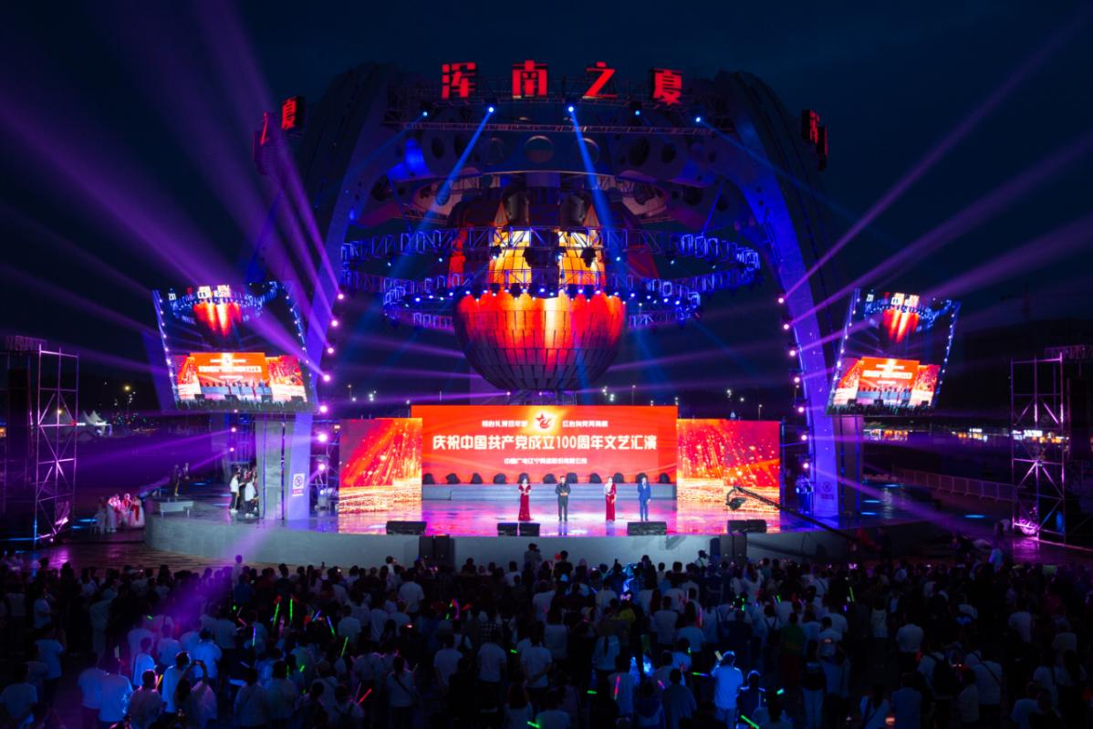 渾南之夏,黨旗飄揚;渾水河畔,歌舞傳情。2021年6月27日傍晚,中國廣電遼寧網(wǎng)絡股份有限公司(簡稱中國廣電遼寧公司)“初心禮贊百年夢 紅心向黨再揚帆”——慶祝中國共產(chǎn)黨成立100周年文藝匯演,在沈陽市渾南新區(qū)中央公園文化廣場隆重舉行。公司領導曾紹武、張曉鈞、陳金宏、王兆恒、要春華,總助級領導李成雨和來自公司總部及沈陽、撫順、本溪市分公司的300余名干部員工及周邊群眾共計千余人觀看了演出,共同慶祝黨的百年華誕。
