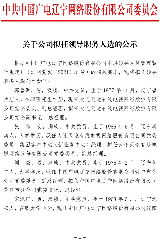關(guān)于公司擬任領(lǐng)導(dǎo)職務(wù)人選的公示