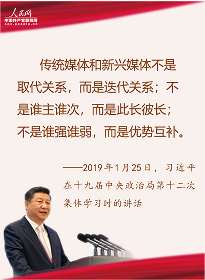 編者按:最新出版的《求是》雜志第6期發(fā)表了習(xí)近平總書記的重要文章《加快推動(dòng)媒體融合發(fā)展 構(gòu)建全媒體傳播格局》(2019年1月25日在十九屆中央政治局第十二次集體學(xué)習(xí)時(shí)的講話)。習(xí)近平從深刻認(rèn)識(shí)全媒體時(shí)代的挑戰(zhàn)和機(jī)遇、全面把握媒體融合發(fā)展的趨勢(shì)和規(guī)律及推動(dòng)媒體融合向縱深發(fā)展等三方面對(duì)加快推動(dòng)媒體融合發(fā)展進(jìn)行了重要論述。