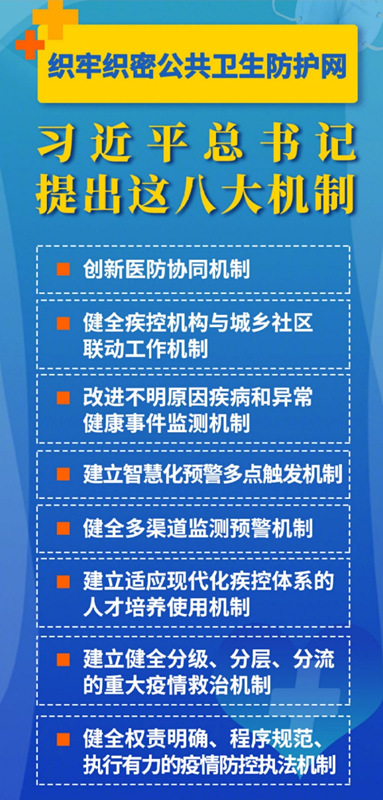 從應(yīng)急響應(yīng)到救治,從預(yù)防到預(yù)警,從法律法規(guī)到生活習(xí)慣……織牢織密公共衛(wèi)生防護(hù)網(wǎng),需要各方面系統(tǒng)集成,合力落實(shí)。