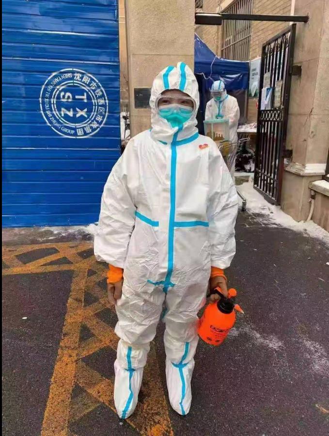 王捷是沈陽分公司鐵西區(qū)域一公司的營業(yè)代表。1月6日晚,沈陽市鐵西區(qū)發(fā)布《關(guān)于開展封閉園區(qū)志愿服務(wù)》的倡議書,家住篤工街道的王捷得知自己所在街道有中風(fēng)險封閉小區(qū)、抗疫工作者人手緊缺后,第一時間與社區(qū)取得聯(lián)系,表達(dá)了做志愿者的想法,經(jīng)與社區(qū)主任張寶蘭溝通后,王捷被編入社區(qū)抗疫消殺組,負(fù)責(zé)鐵西封閉園區(qū)納帕陽光小區(qū)的消殺工作。