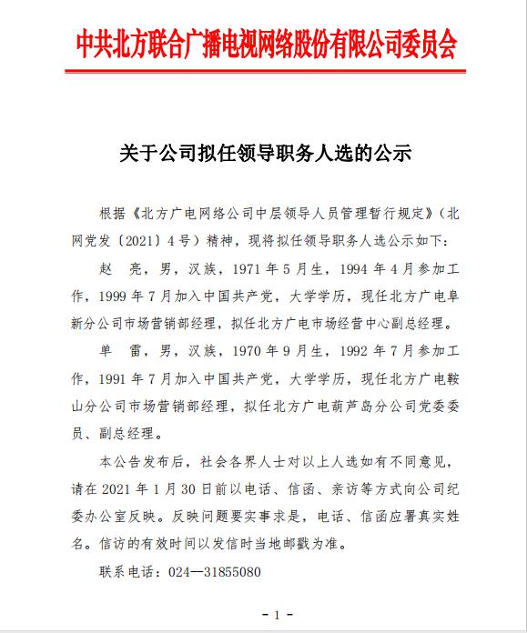 關(guān)于公司擬任領(lǐng)導(dǎo)職務(wù)人選的公示