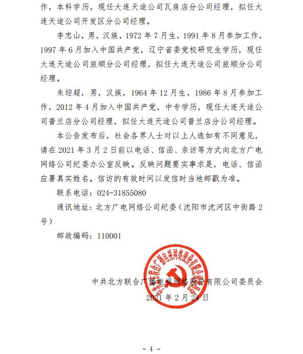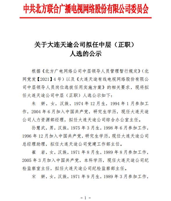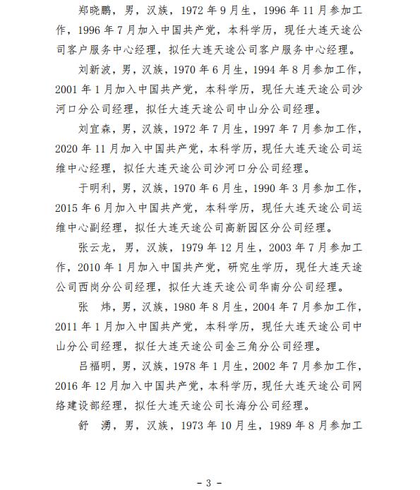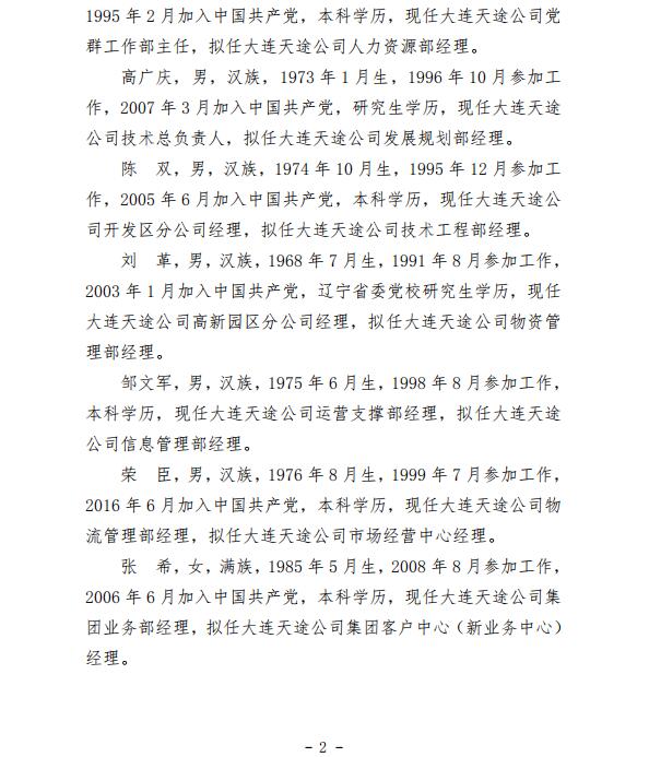 關(guān)于大連天途公司擬任中層(正職)人選的公示