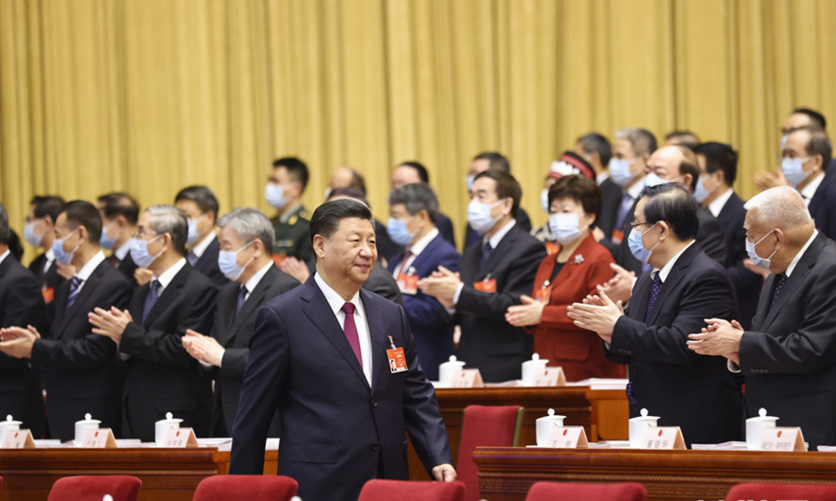 習近平、李克強、汪洋、王滬寧、趙樂際、韓正、王岐山和大會主席團成員在主席臺就座。