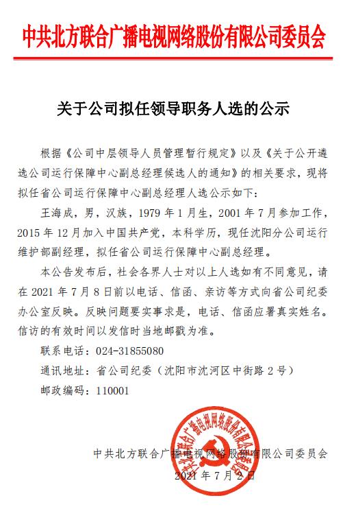 關(guān)于公司擬任領(lǐng)導(dǎo)職務(wù)人選的公示