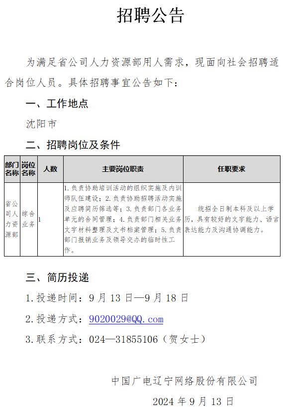 聯(lián)系人:遼寧公司鞍山市分公司 簡歷投遞郵箱:452307761@qq.com