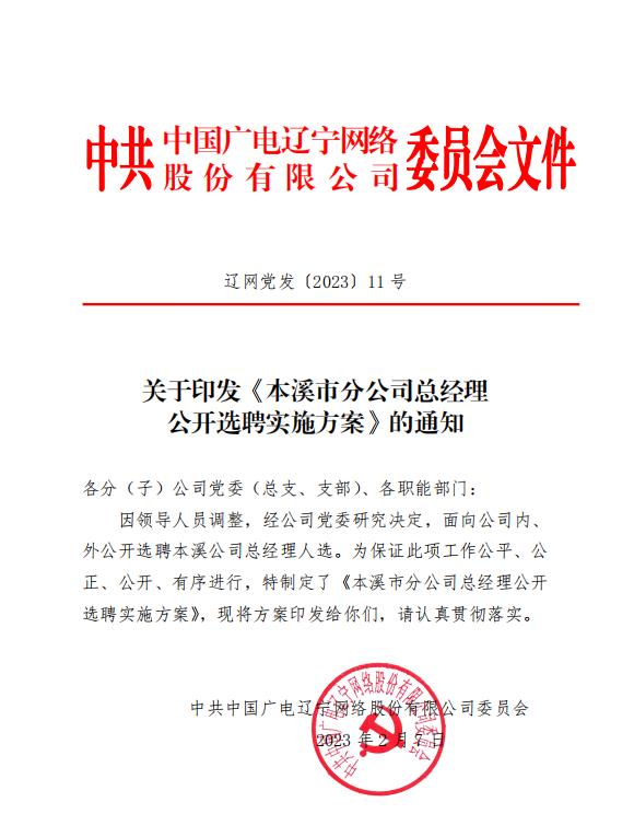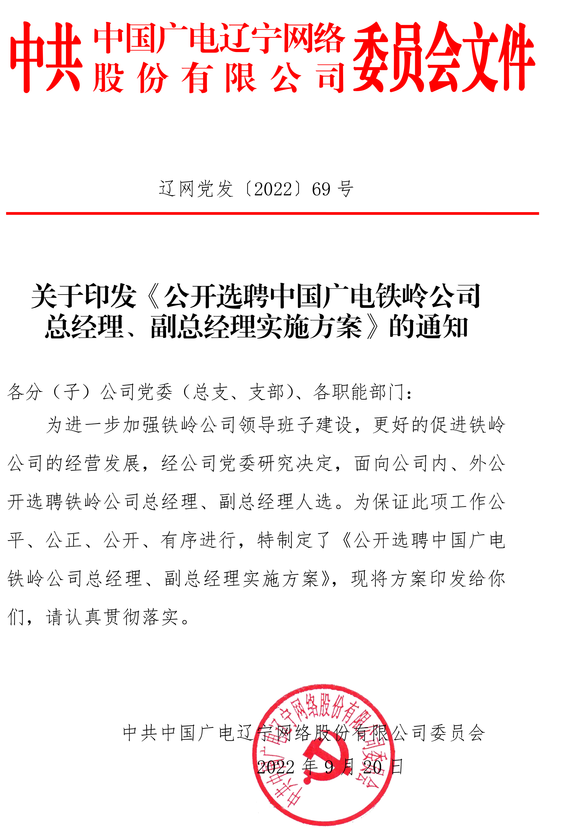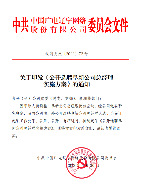 依據(jù)《公司中層領(lǐng)導(dǎo)人員管理暫行規(guī)定》(遼網(wǎng)黨發(fā)〔2021〕3 號)的相關(guān)規(guī)定,經(jīng)公司黨委研究決定,面向公司內(nèi)、外公開選聘阜新公司總經(jīng)理人選。具體方案如下: